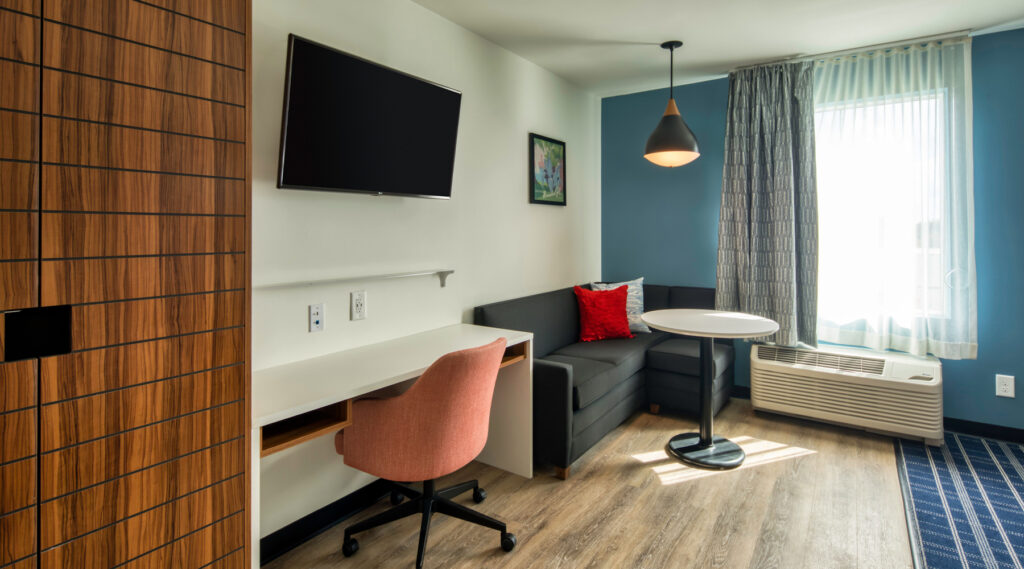 Look for temporary housing that offers Wi-Fi included in the rate, with no extra setup required. Bonus points if the suites have built-in workspaces or tables. Uptown Suites offers both, plus a small on-site meeting space at every property that can be reserved, giving you flexibility for work or group needs without relying on coffee shops.